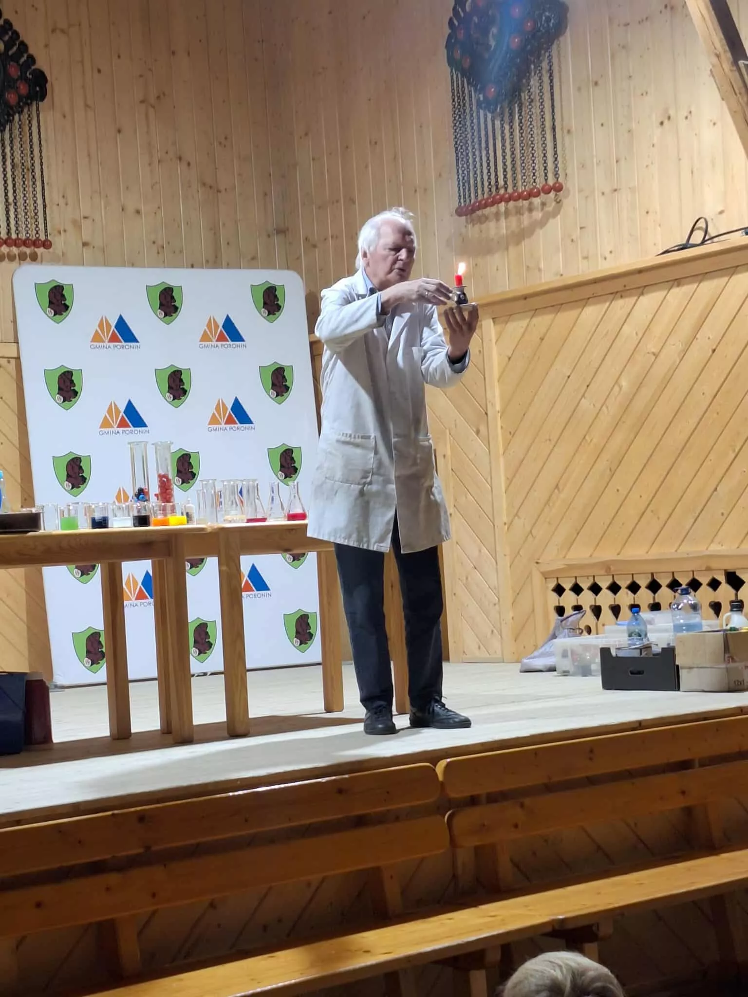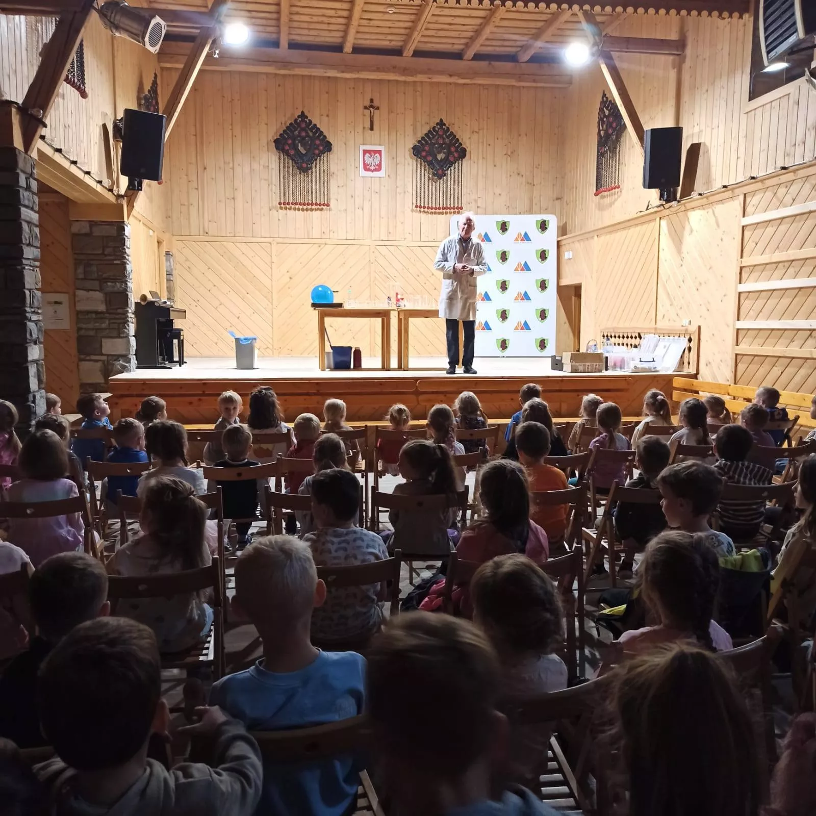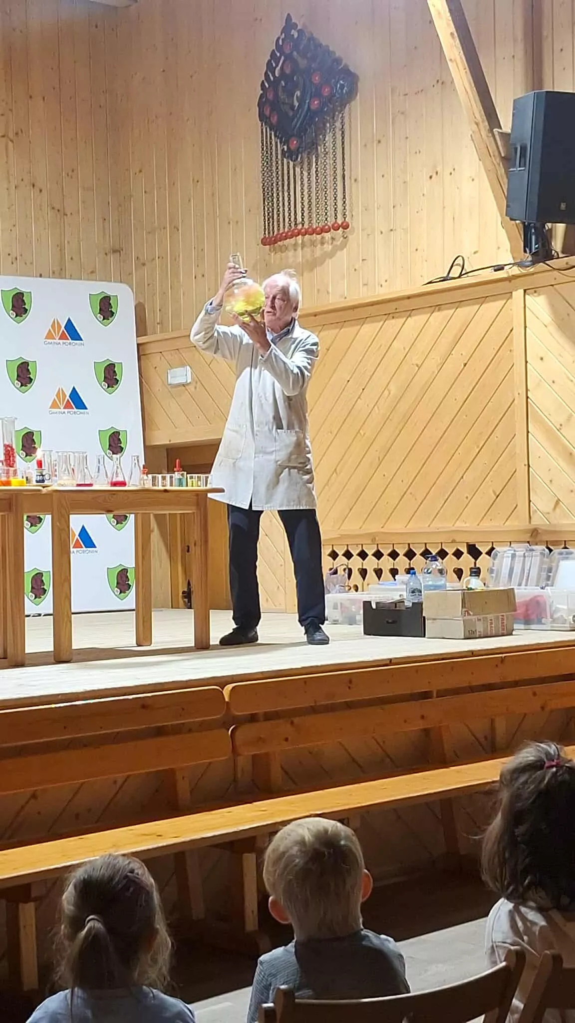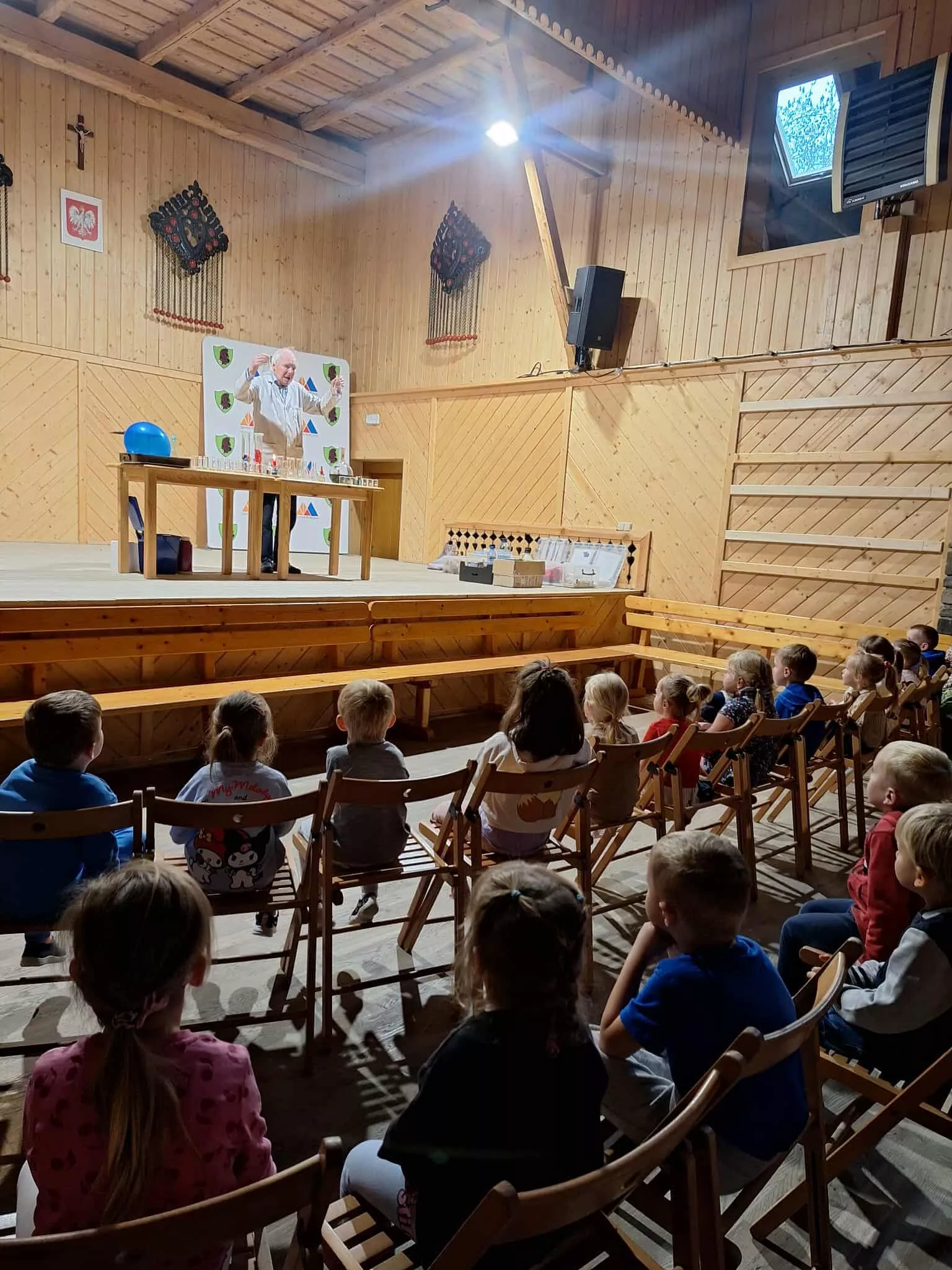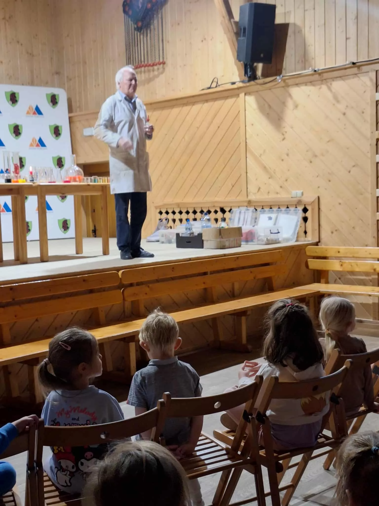 W naszym przedszkolu odbyły się niezwykłe warsztaty chemiczne, które zamieniły salę GOK-u w prawdziwe laboratorium. Podczas spotkania z panem Zbigniewem dzieci wcieliły się w rolę małych naukowców i z ogromnym zainteresowaniem obserwowały fascynujące eksperymenty, w tym kolorowe reakcje chemiczne. Zajęcia dostarczyły wielu emocji, radości i zachwytu, a jednocześnie pokazały, że nauka może być ciekawa i pełna niespodzianek. Dziękujemy za inspirujące i bezpieczne warsztaty, które rozbudziły w dzieciach ciekawość świata.